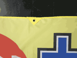 横断幕や懸垂幕にはハトメの取付けや四方をロープ等で補強等がが必要な場合があります。当社の横断幕の料金はこれらの加工を全て含めた料金(加工料金無料)で表示してあります。横断幕や懸垂幕の加工方法の詳しくはこちらから。